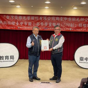 台中市國小弱勢學童眼鏡捐贈儀式Posted on 2023-03-15 [台中市國小弱勢學童眼鏡捐贈儀式]今日好榮幸代表公司 花旗眼鏡參與這個有意義的活動讓更多學童能在求學的人生道路上戴了一副好眼鏡.感受這世界的幸福享受人生的美好期許未來能更有能力取之於社會,用之於社會☎️:04-23322088🧭:https://reurl.cc/5rgEEG🗺:台中市霧峰區中正路885號 (彰化銀行🏦對面)#霧峰花旗驗光所 #驗光所#專業驗光 #專業驗光配鏡#霧峰最美眼鏡店 #國民旅遊卡特約商店#純鈦金屬 #日係 #韓系#捐贈儀式 #台中市驗光師公會 FacebookTwitterPinterest